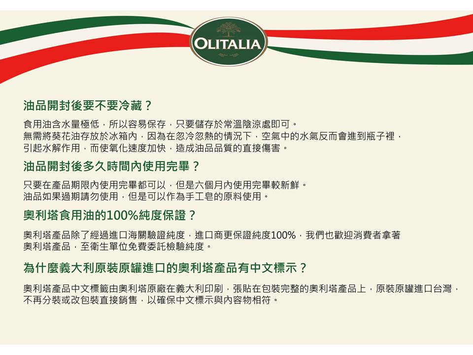●全世界最好的油,義大利原裝原罐進口,100%純度保證